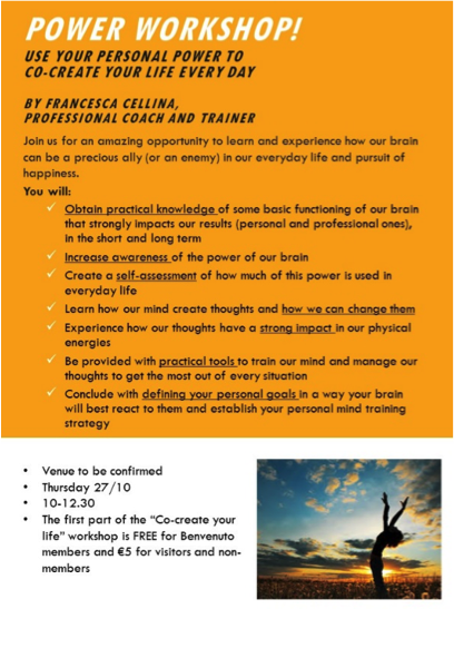 – “Tips and Tricks to go back to a satisfying working life” (“Consigli e trucchi per ritornare a una vita lavorativa appagante”) Benvenuto International Club Varese, marzo 2015